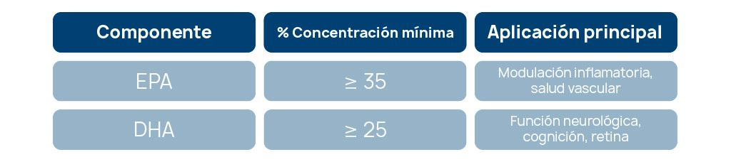 ○ DHA (docosahexaenoico): Esencial para el desarrollo y mantenimiento del cerebro, los ojos y el sistema nervioso.