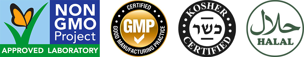 Cumple con certificaciones GMP, No-GMO, Kosher y Halal.