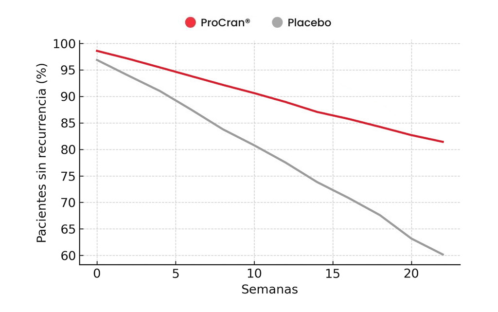 Efecto antiadherente validado clínicamente: Inhibe la adhesión de E. coli a la mucosa urinaria.