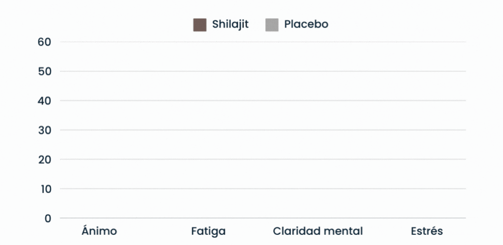 Se destaca la mejora en estado de ánimo, reducción de fatiga, claridad mental y disminución del estrés en comparación con el placebo.